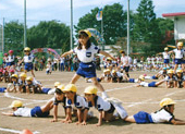 大学の広いグラウンドで運動会