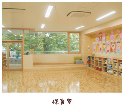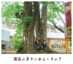 どのお部屋からも園庭の緑が望める設計で、園庭の大木の間を抜けるやわらかな日差しと、園児たちの元気な声が聞こえてきます。