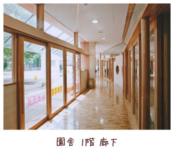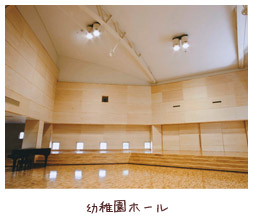 1階には未就園児クラス、満3歳児クラス、年少組、年中組の教室、イベントのホールなどがあります。